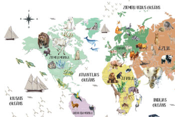 JAUNUMS! Pelēka pasaules karte ar valstīm un dzīvniekiem