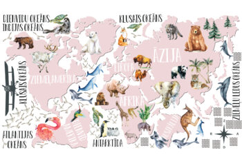 JAUNUMS! Gaiši pelēka pasaules karte ar valstīm un dzīvniekiem